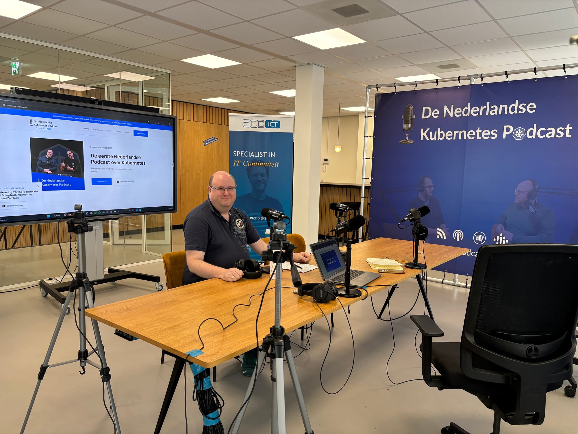 A few days ago, I had a baptism of fire as a podcast debutant, when the Dutch Kubernetes Podcast celebrated their 100th episode at their office, ACC ICT in Nieuwegein, and invited us to join their livestream (hello YouTube!) to talk about Kubernetes at Funda. For this special occasion, they hosted a live broadcast for eight hours straight, inviting several companies - including us - to participate. It was a unique setup: combining their own celebration with a good cause.