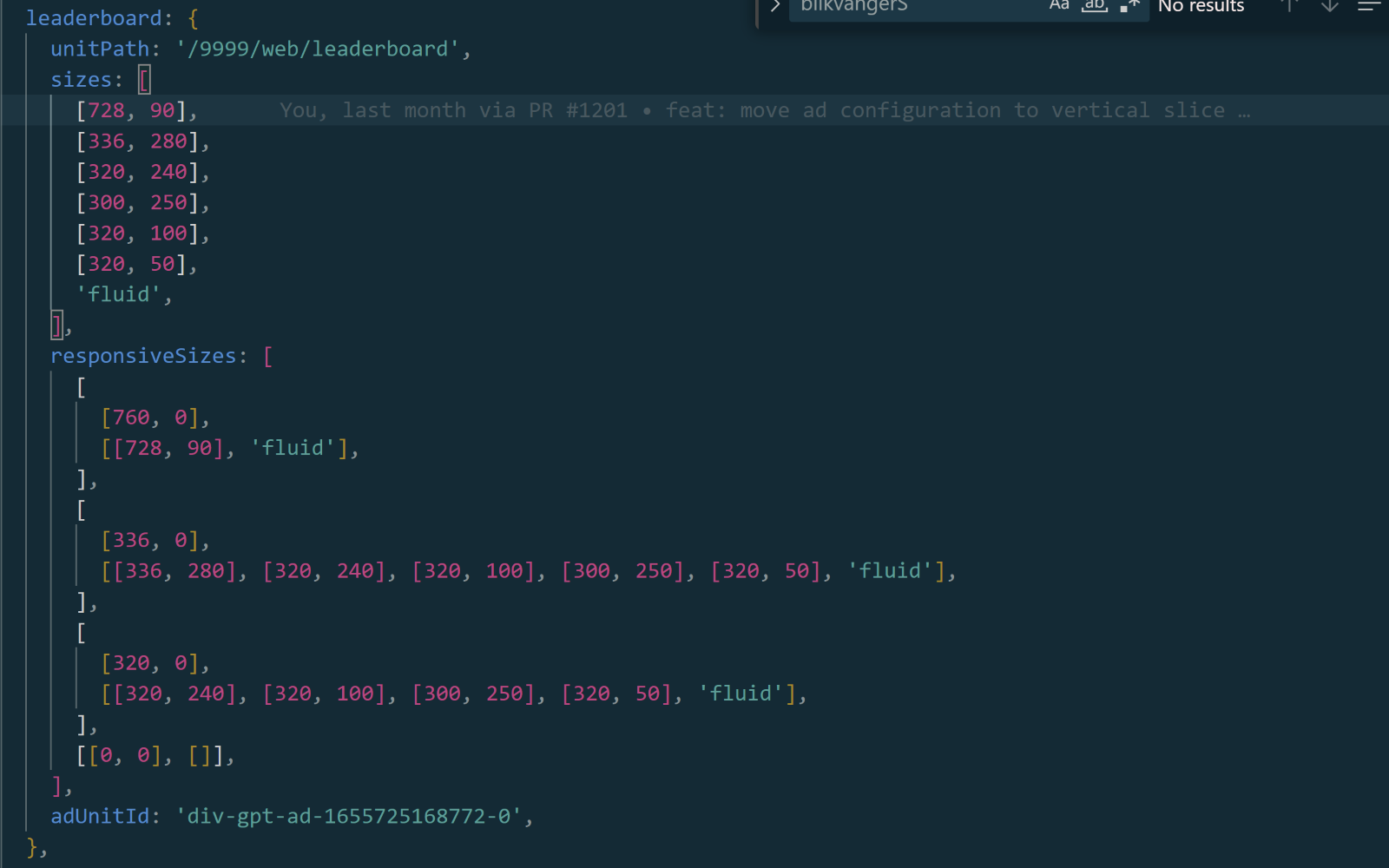 We have a configuration specific to unique ad positions, but we also have a global configuration. These are properties that apply to the entire advertising implementation in a project. Some examples are: Lazy loading, PPID’s (Publisher Provided Identifiers) and page-level Key-value categories.