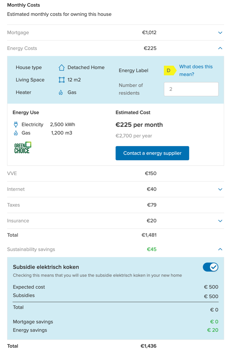 'This year, my team brought back the same calculator, but this time we added a proof of concept for a sustainability calculator, which would offer an overview of sustainability subsidies available for individual homes from both national and local governments in the Netherlands.'
