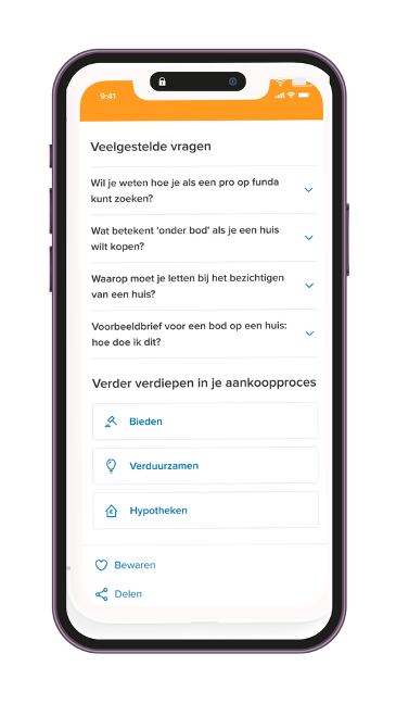 Based on previous user research we opted to run the experiment on the Object Detail Page (see screenshot). This page displays all the details of a specific object (house or apartment), such as price, size, year it was built and energy label. Therefore, on this page users are already in a learning and information processing mindset while they are browsing all the detailed information about a particular property. Providing an option for additional information by entry points to the content platform would therefore not feel out of place or be distracting.