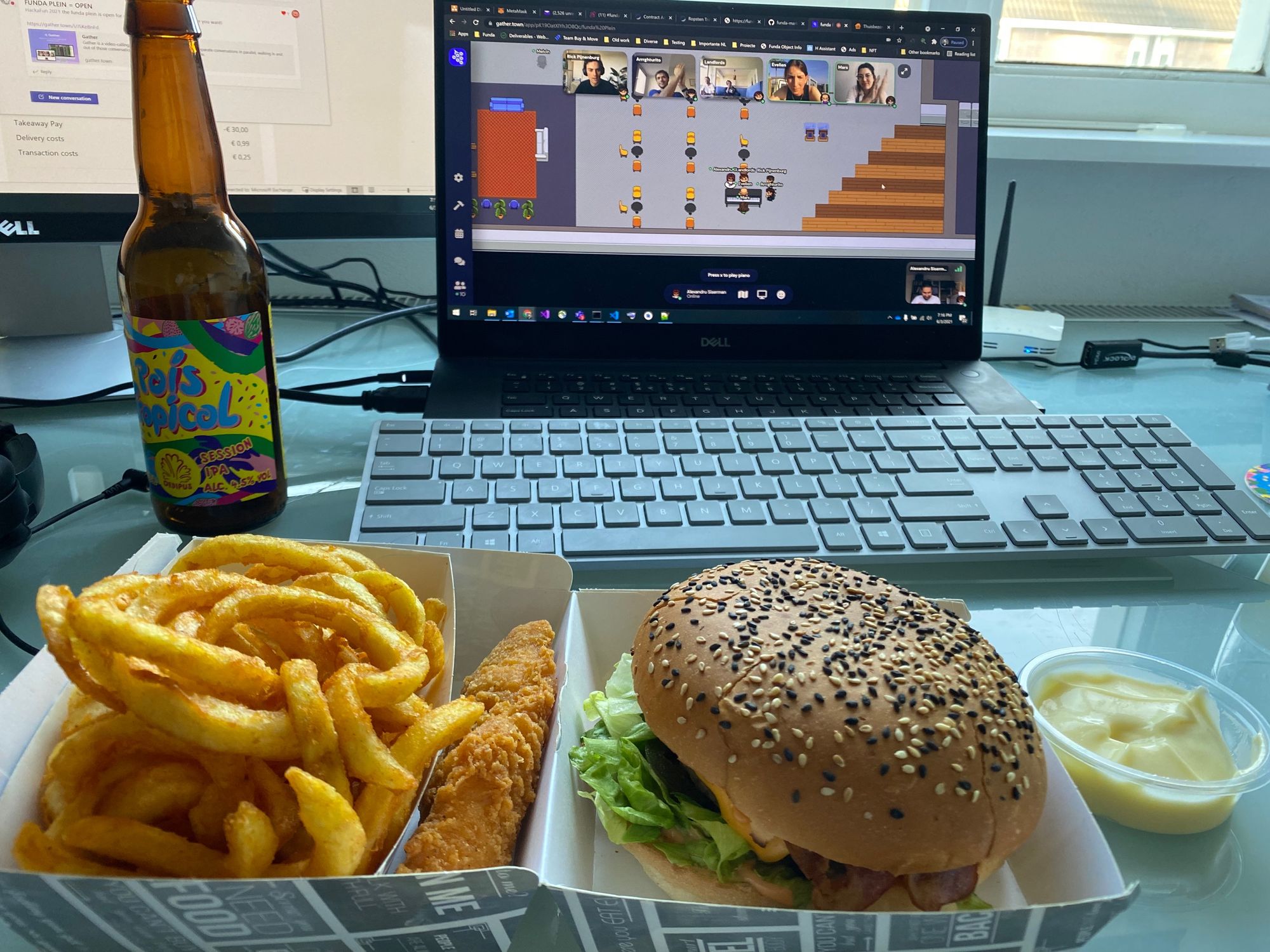 Jelle: ‘The hackathon team recreated the normal office atmosphere online. Instead of getting takeaway pizzas in the office, we were able to order food for home delivery and also got sent a box of tasty beers. They also made a virtual copy of the office for the online platform, so we could eat together with colleagues in this digital setting. This gave us, to some extent at least, the feeling of being together.’